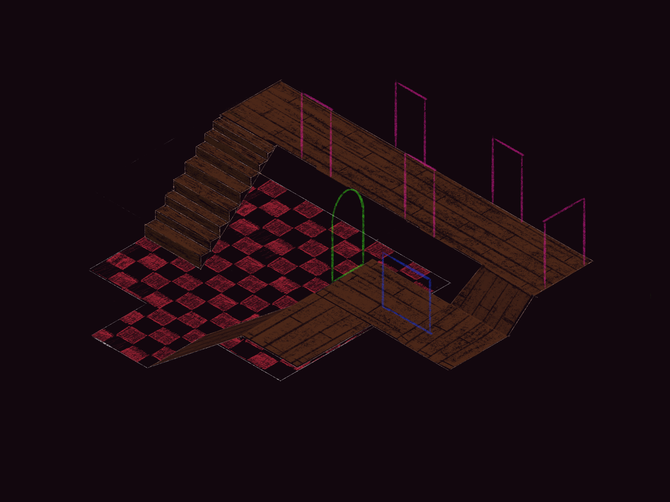 In our adaptation, the protagonist is invited to an old ballet school where her mother once studied in order to create a report. However, upon arrival, she finds the place seemingly empty and becomes trapped in a maze-like game of corridors filled with scares, stories, and enigmas. The player will need to navigate through these areas to uncover the history of the building and its inhabitants in order to escape.