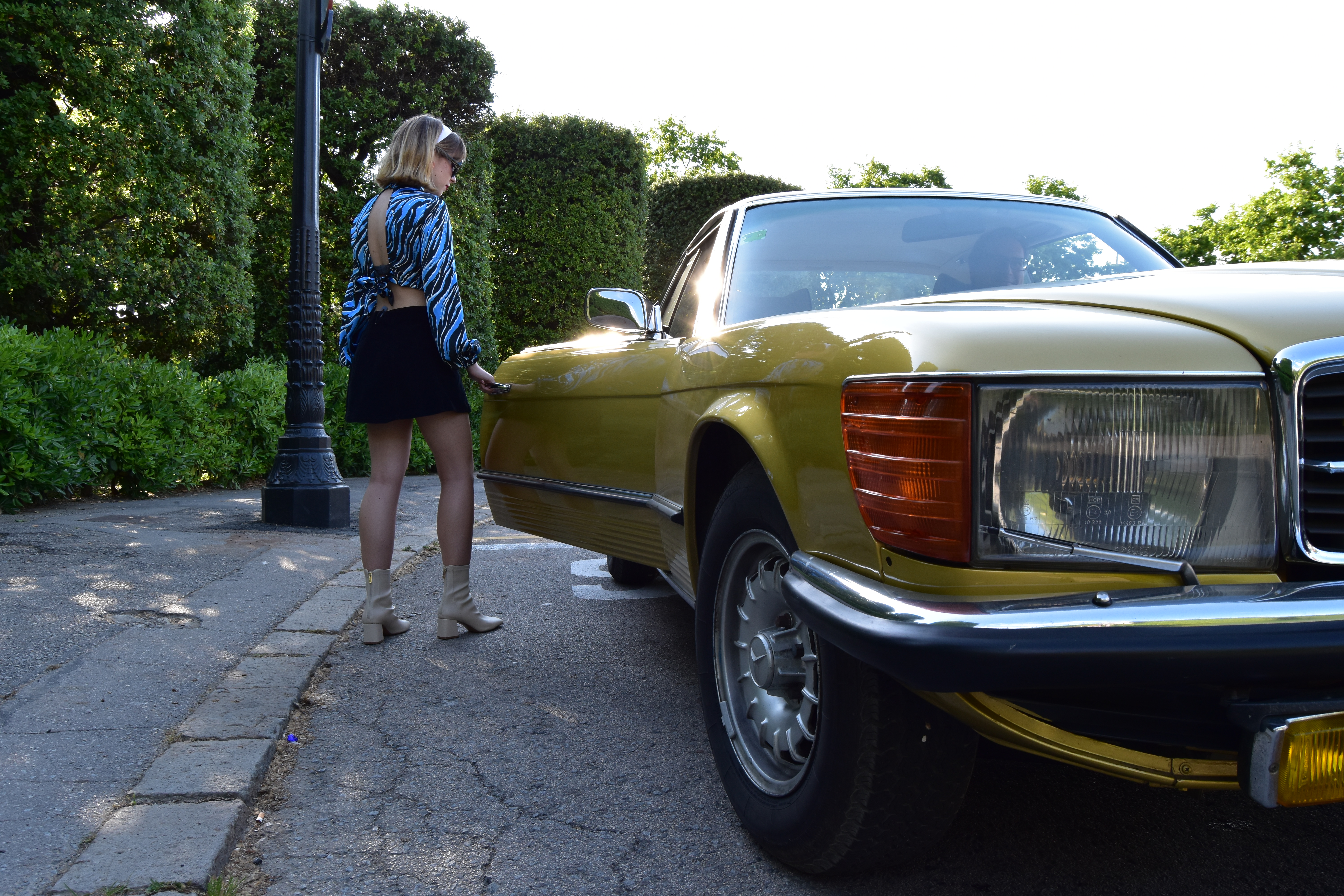 I decided to portray an everyday action, getting into a car, but adding an unknown, an element that would make us ask who the girl was and what her story was. I also wanted to take aesthetics into account, taking inspiration from the 70s and choosing very bright colors.